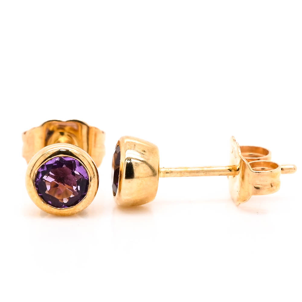 10KT Yellow Gold 0.50CTW Amethyst Bezel Set Earrings.