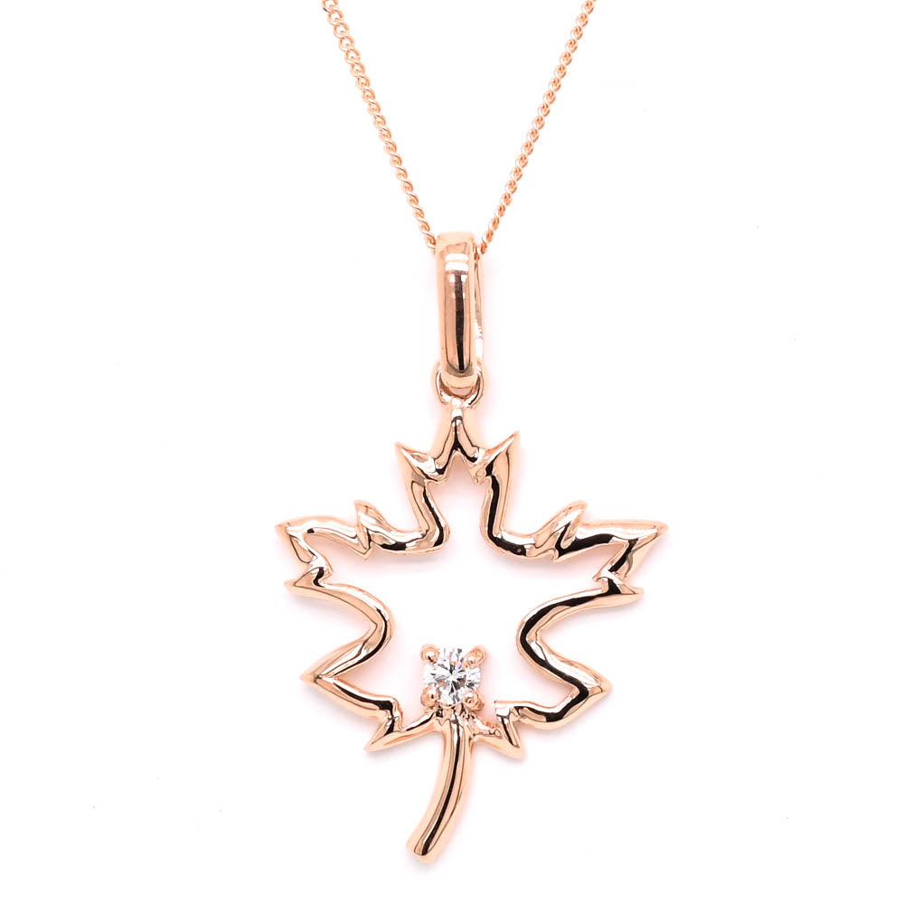 Fire & Ice 10KT Rose Gold 18" 0.06CTW Canadian Diamond Maple Leaf Necklace.