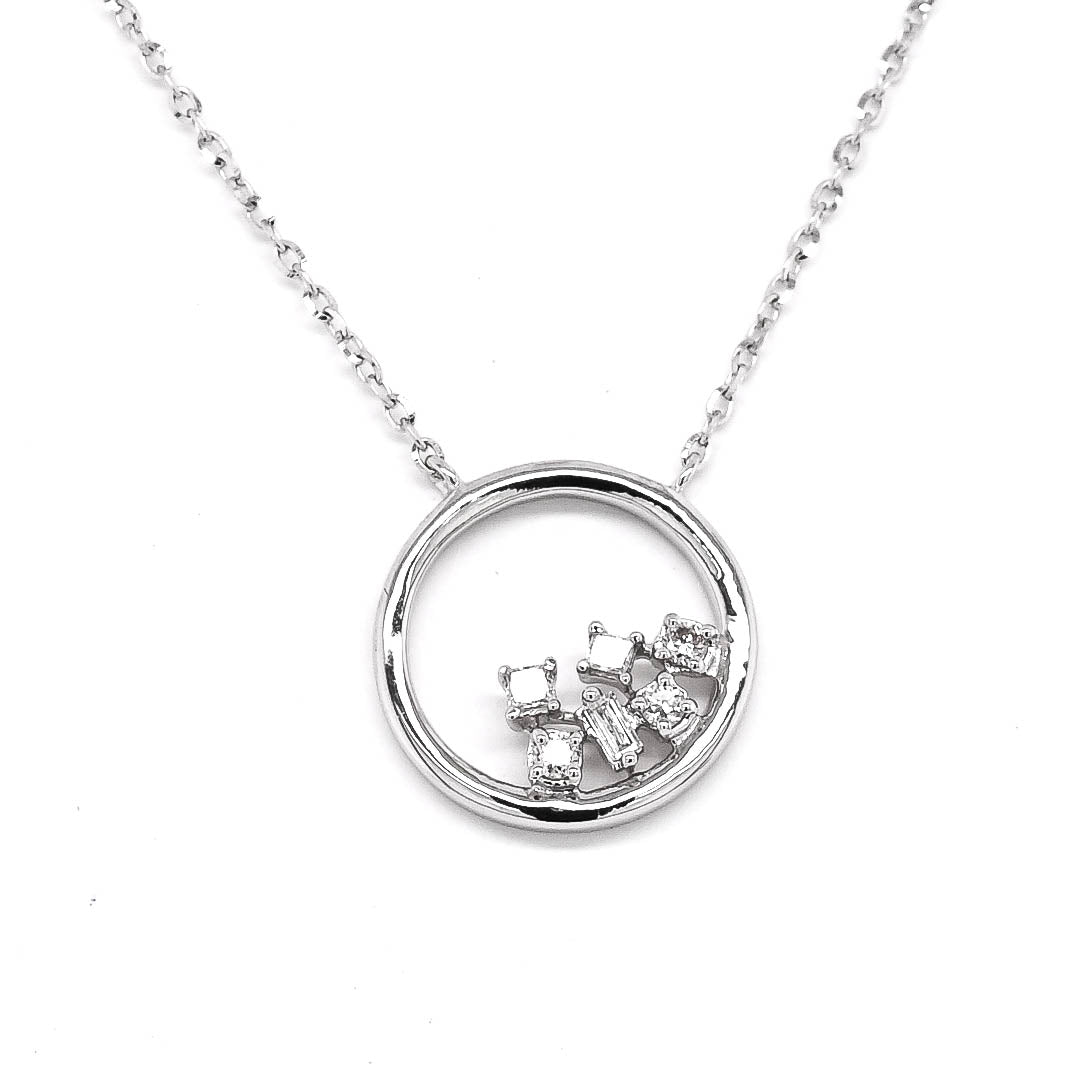14KT White Gold 18" 0.07CTW Diamond Circle Necklace.
