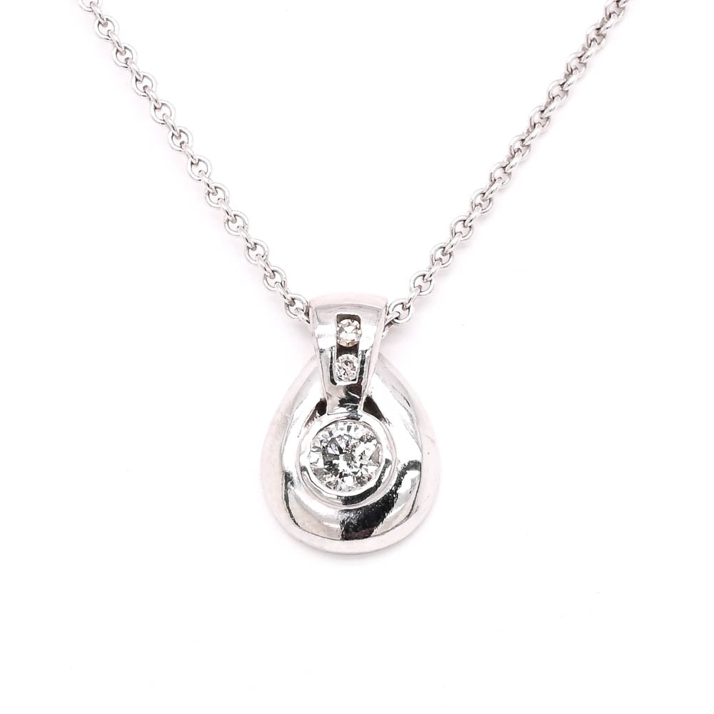 14KT White Gold 18" 0.05CT Diamond Bezel Set Necklace.