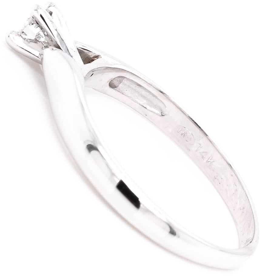14KT White Gold 0.15CT Round Shape Diamond Solitaire Promise Ring.