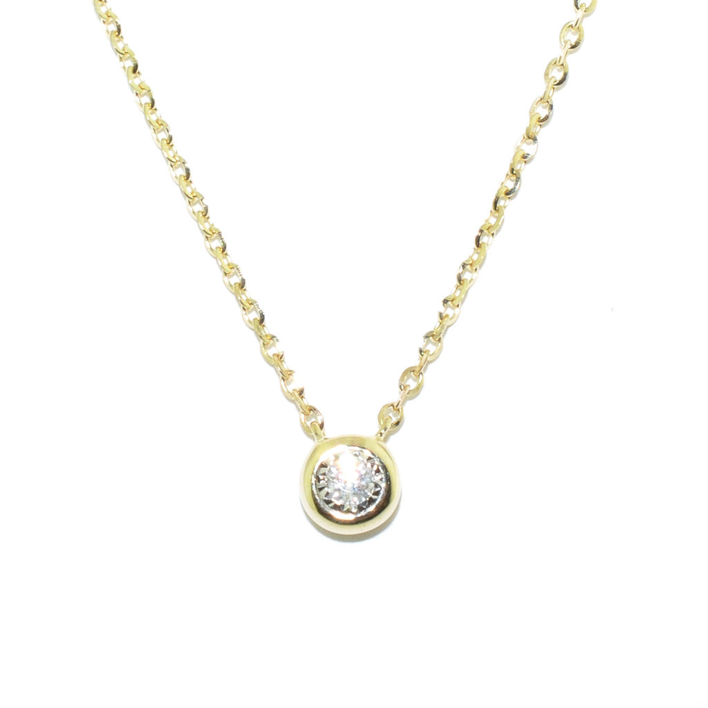 14KT Yellow Gold 18" 0.03CT Diamond Bezel Set Necklace.
