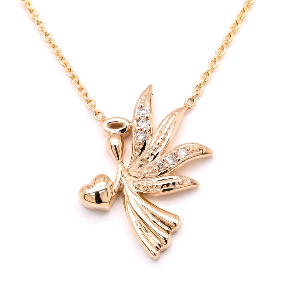 10KT Yellow Gold 18" 0.02CTW Diamond Angel Necklace.