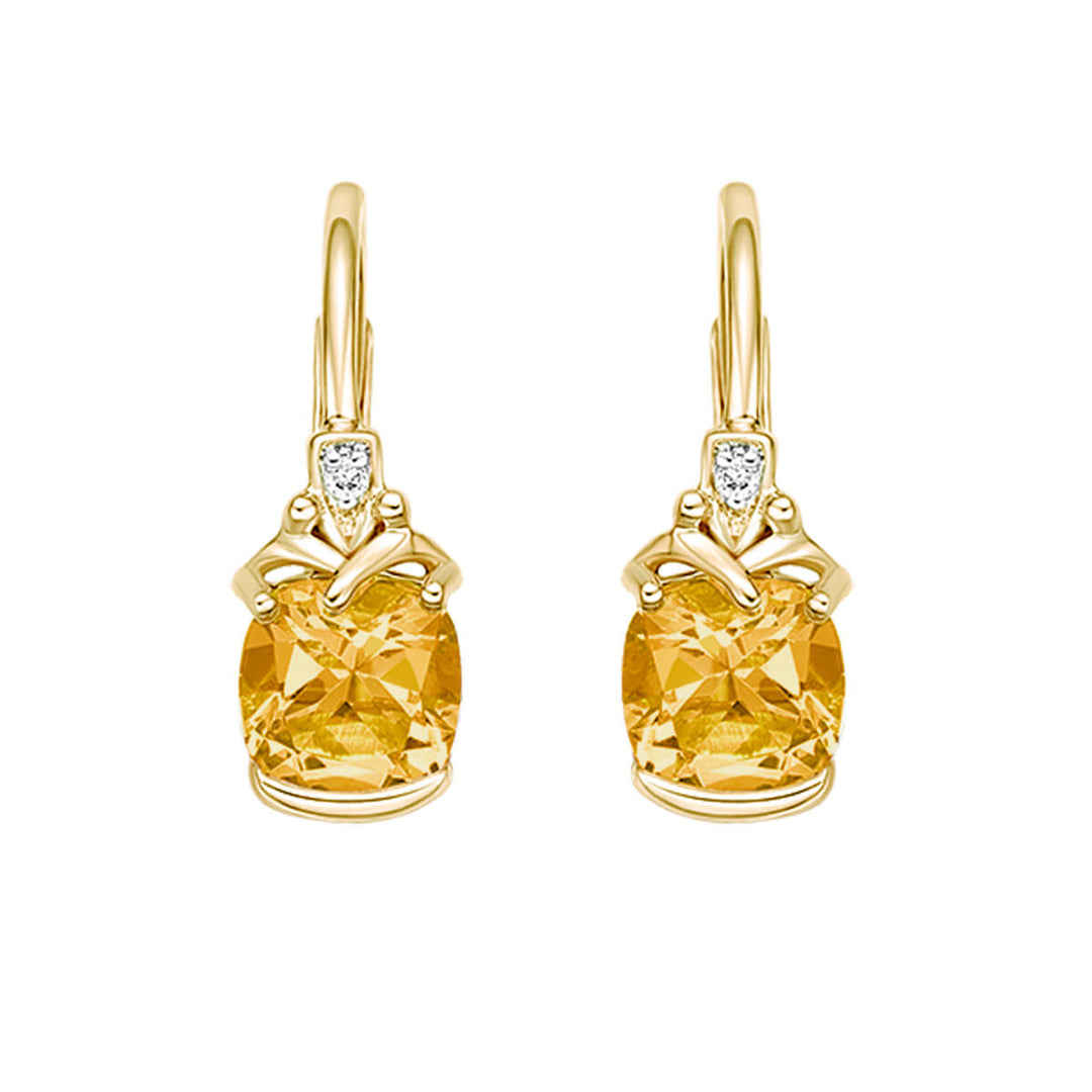 10KT Yellow Gold 1.00CTW Citrine & Diamond Leverback Earrings.