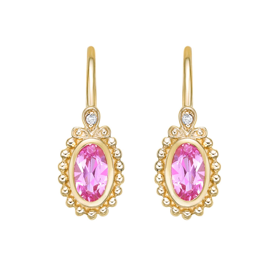 10KT Yellow Gold 0.55CTW Created Pink Sapphire & Diamond Leverback Earrings.