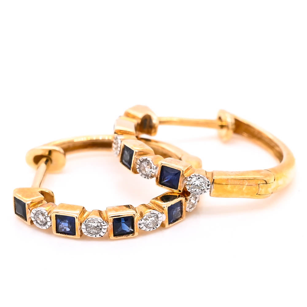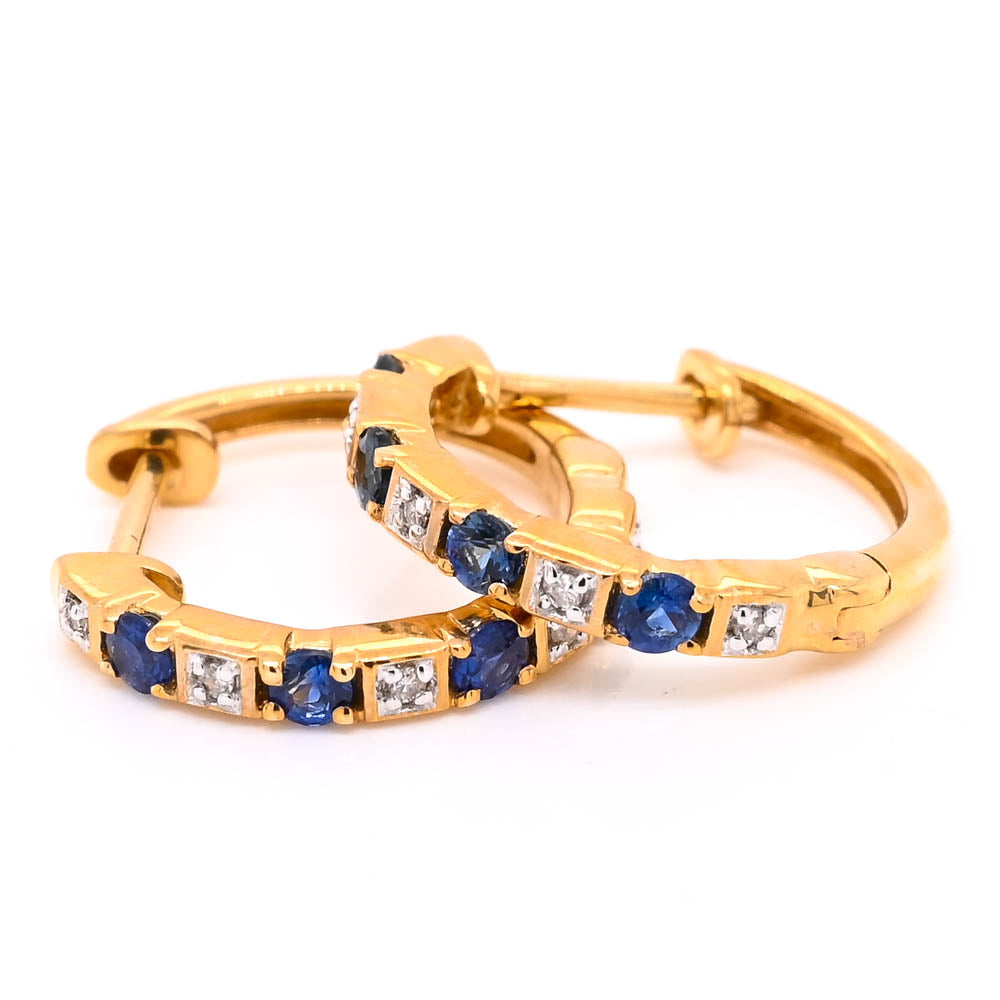 10KT Yellow Gold 0.33CTW Blue Sapphire & Diamond Huggies Earrings.