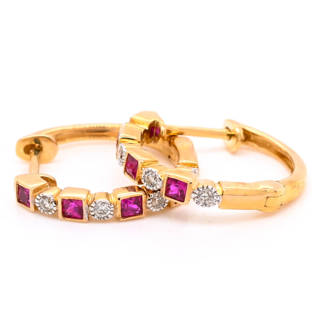 10KT Yellow Gold 14mm 0.24CTW Ruby & Diamond Huggies Earrings.