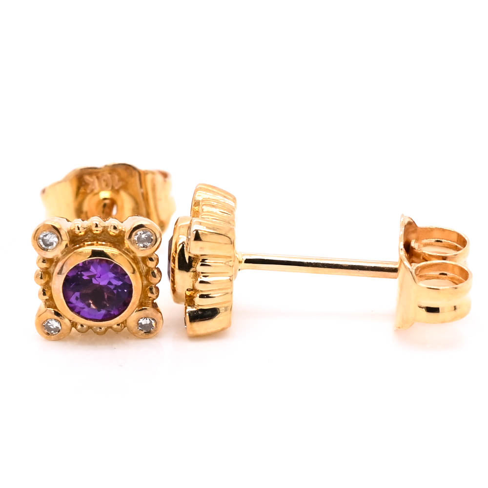 10KT Yellow Gold 0.20CTW Amethyst & Diamond Stud Earrings.
