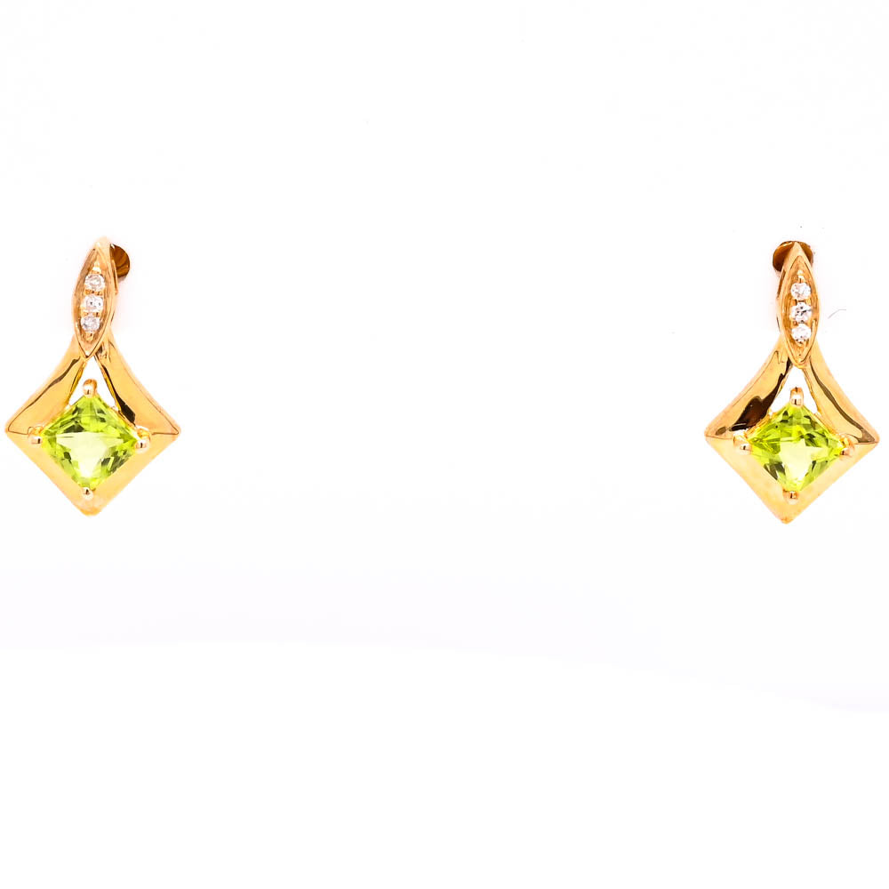 10KT Yellow Gold 0.80CTW Peridot & Diamond Stud Earrings.