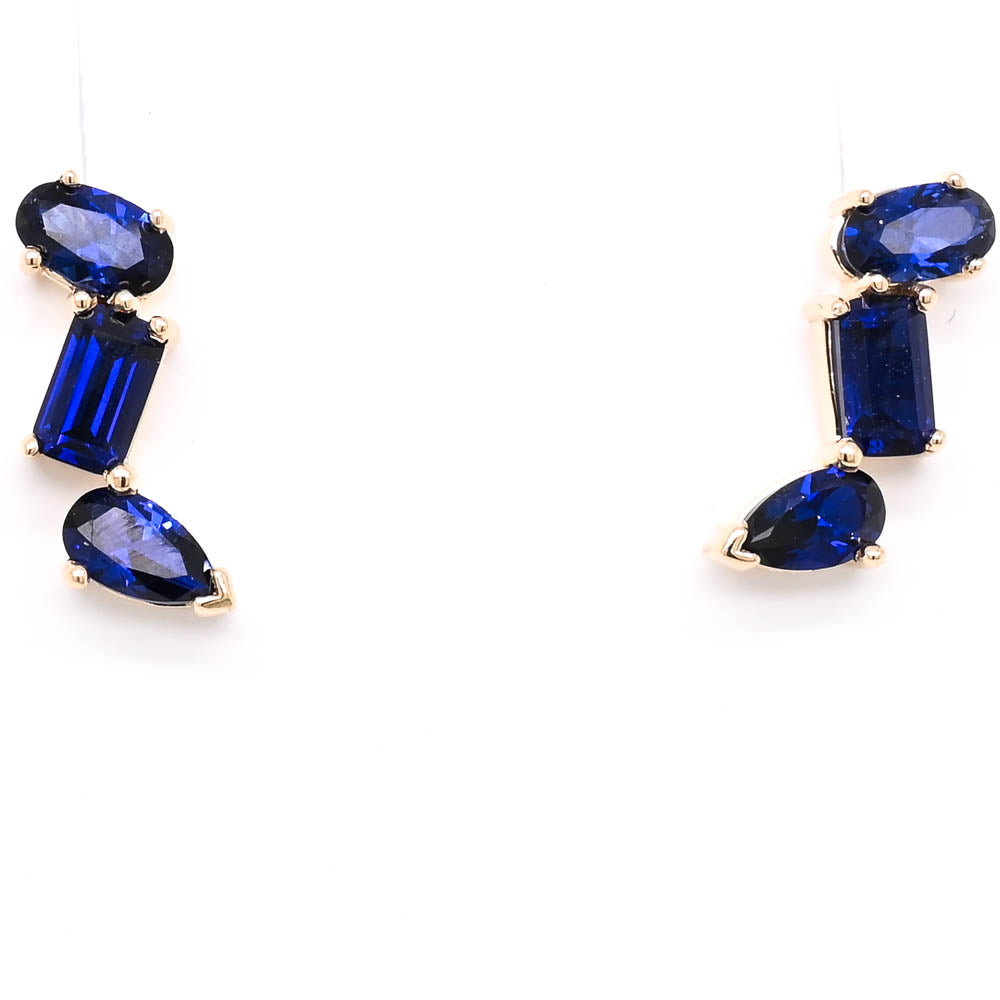 10KT Yellow Gold 1.50CTW LAB Created Blue Sapphire Drop Earrings.