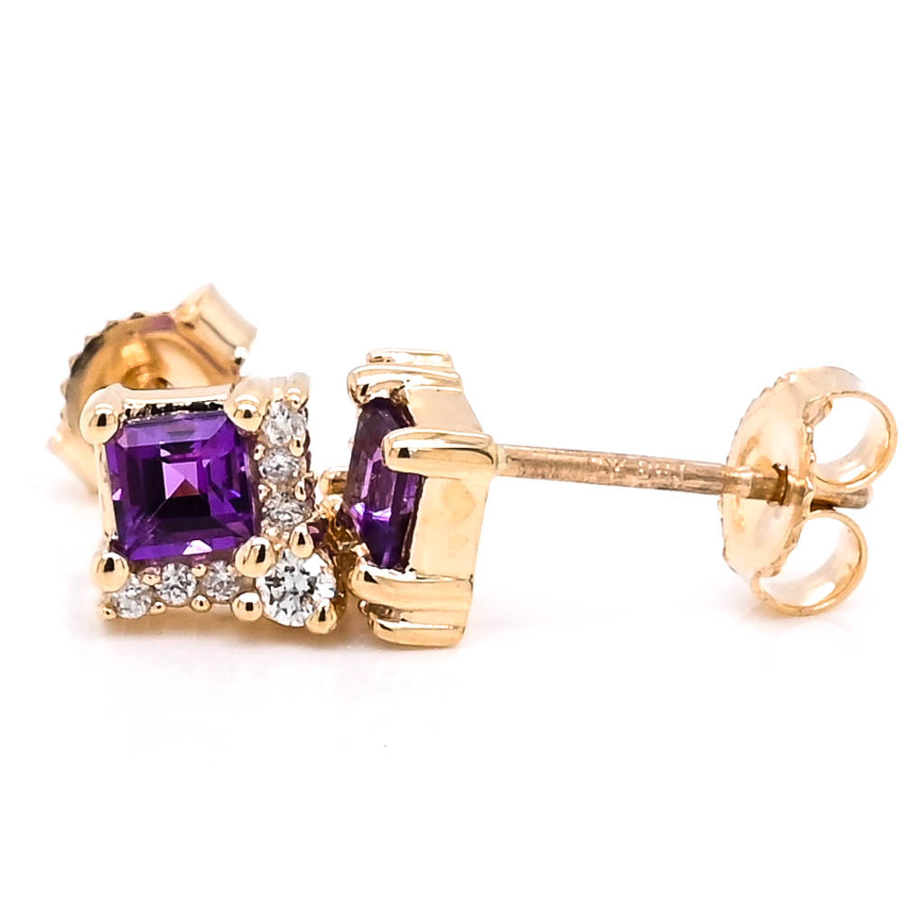 Fire & Ice 10KT Yellow Gold Amethyst & Canadian Diamond Stud Earrings.