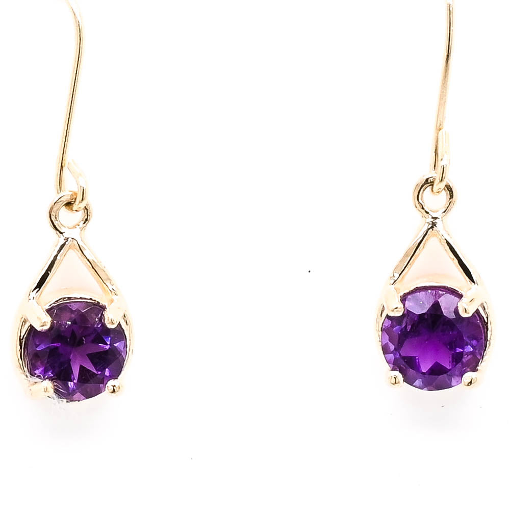 10KT Yellow Gold Round Brilliant Amethyst DropEarrings.