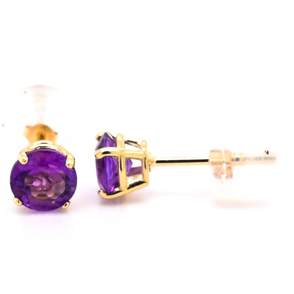 10KT Yellow Gold Round Brilliant Amethyst Stud Earrings.