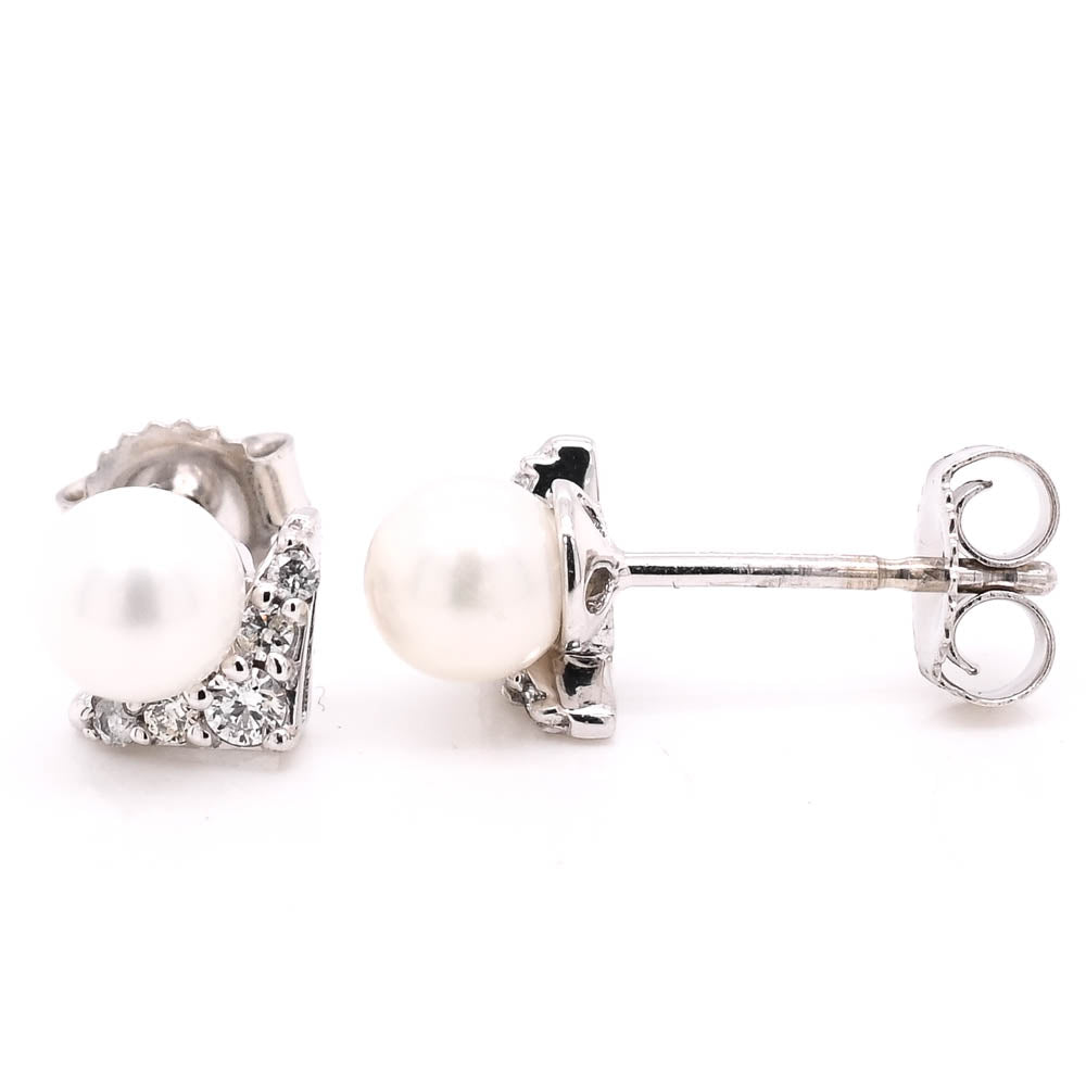 Fire & Ice 10KT Yellow Gold 5-6mm Pearl & Canadian Diamond Earrings.