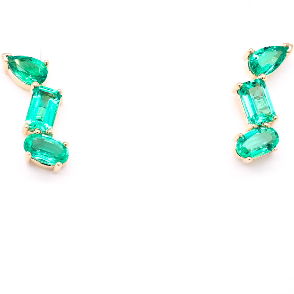 10KT Yellow Gold 1.50CTW LAb Created Emerald Drop Earrings.