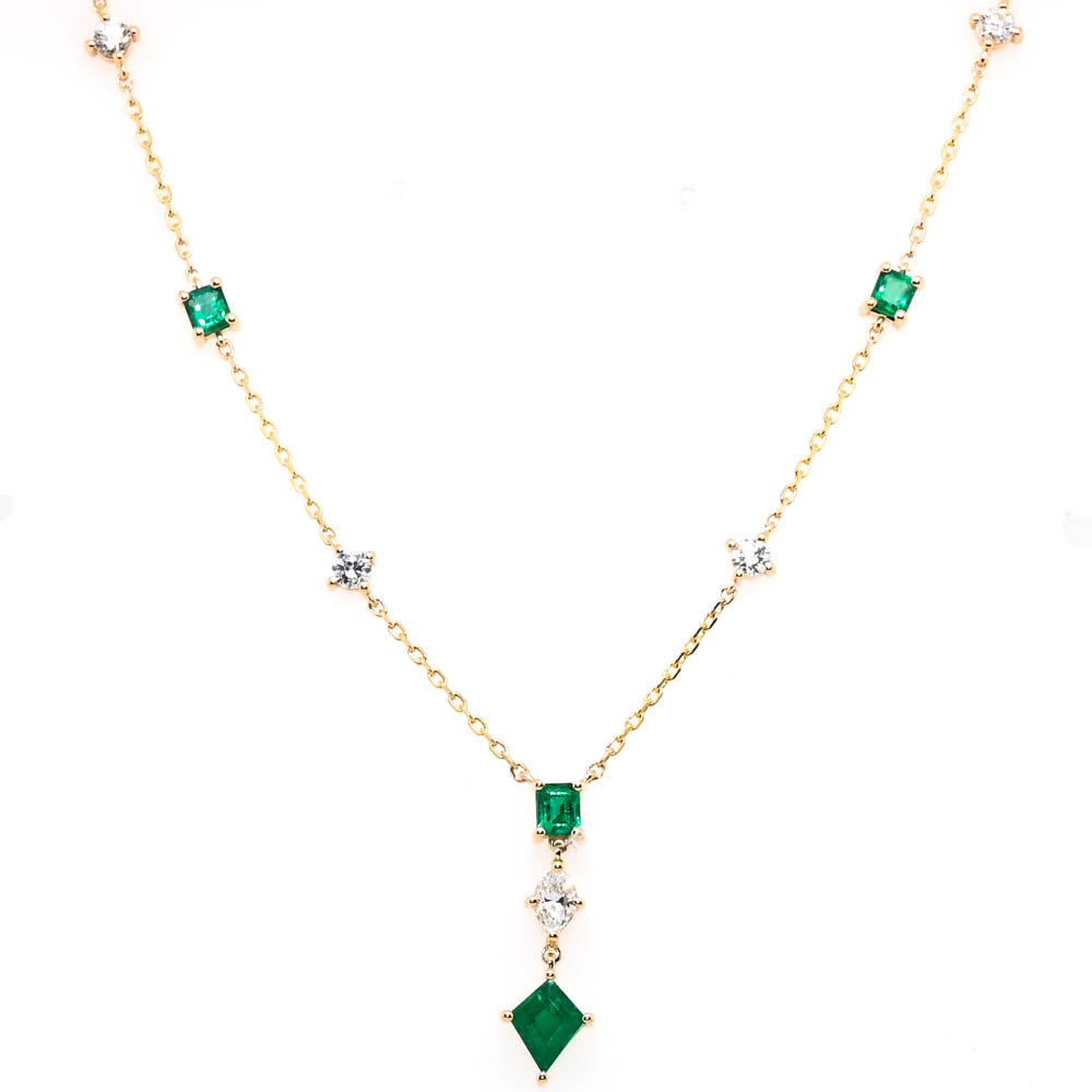 14KT Yellow Gold 18" 1.70CTW Emerald & Diamond Drop Necklace.