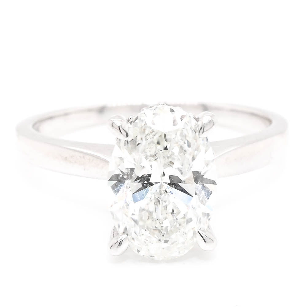 10KT White Gold 2.11CTW Oval shape LAB Created Hidden Halo Engagement Ring.