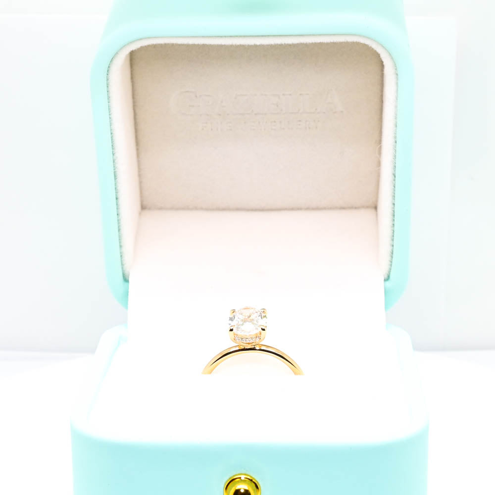 Graziella 14KT Yellow Gold 2.13CTW Oval Shape LAB Created Diamond Hidden Halo Set Engagement Ring.