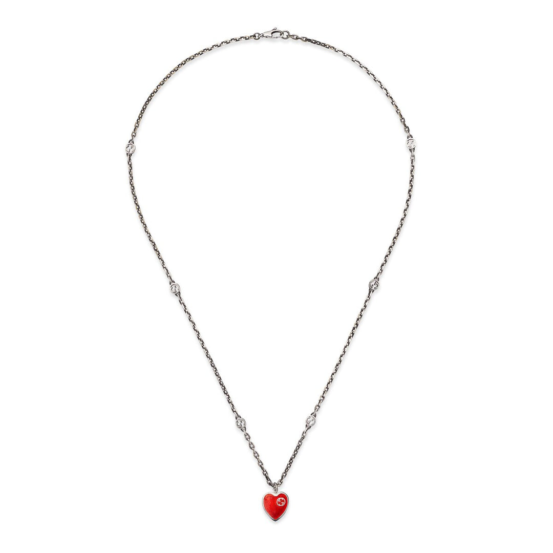 Gucci Sterling Silver 19.7" Interlocking G Heart Necklace.