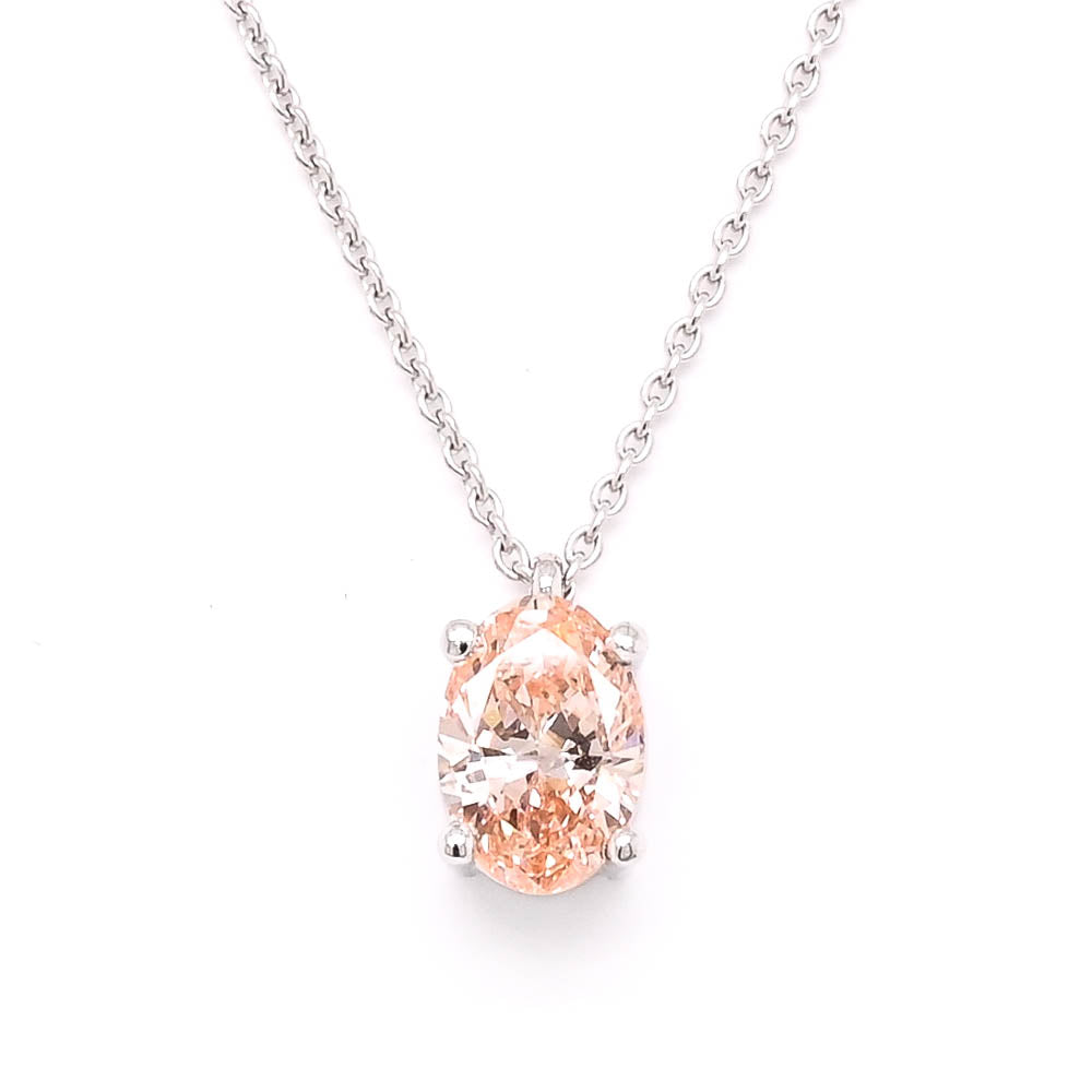10KT White Gold 18" 0.80CT Oval Shape LAB Created Pink Diamond Soliatire Necklace.