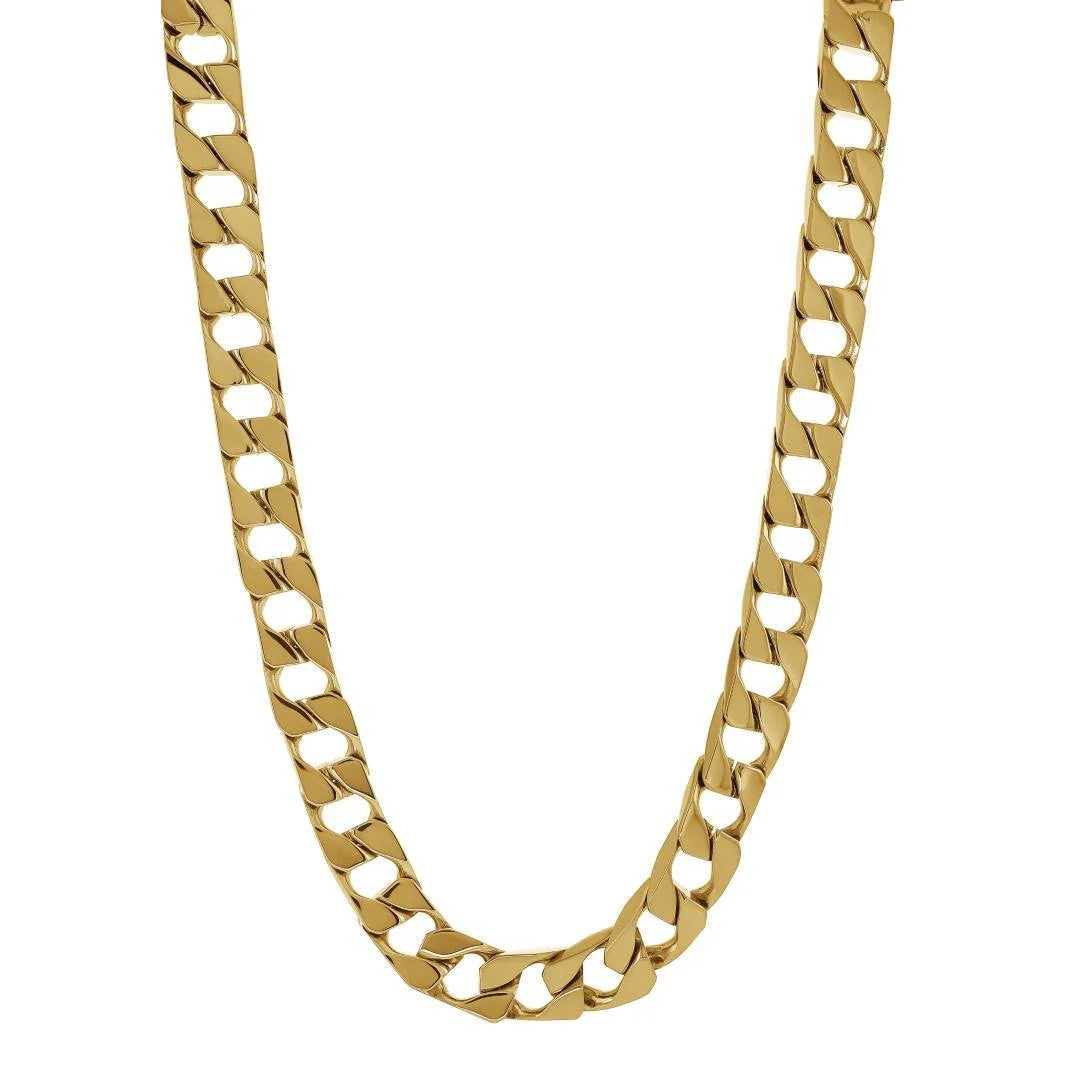 Italgem Steel Gold IP Plated 24" 11.3mm Flat Curb Link Chain.