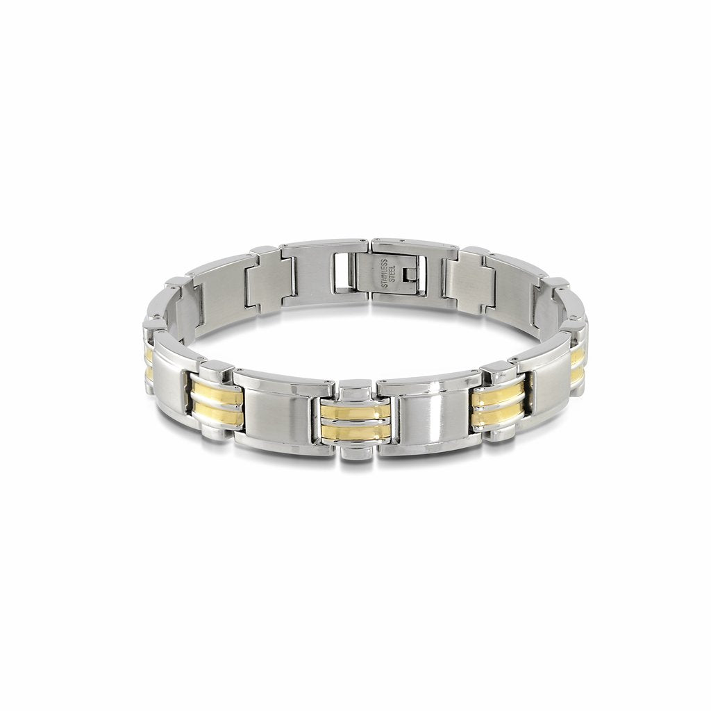 Italgem Steel Black Ion-Plated Yellow Ion-Plated Stainless Steel 18K Accents Bracelet.