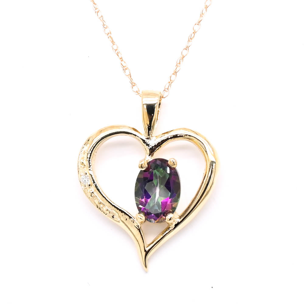 10KT Yellow Gold 18" Mystic Topaz & Diamond Heart Necklace.