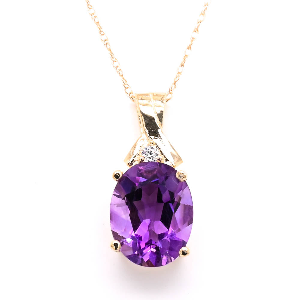 10KT Yellow Gold 18" Amethyst & Diamond Necklace