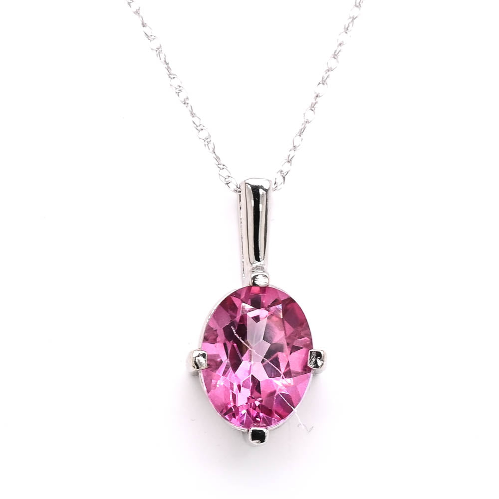10KT White Gold 18" Oval Shape Pink Topaz Necklace.