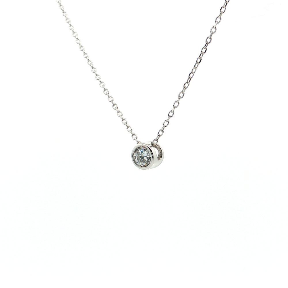 Sterling Silver 18" 0.37CT Round Brilliant LAB Created Diamond Bezel Set Necklace.