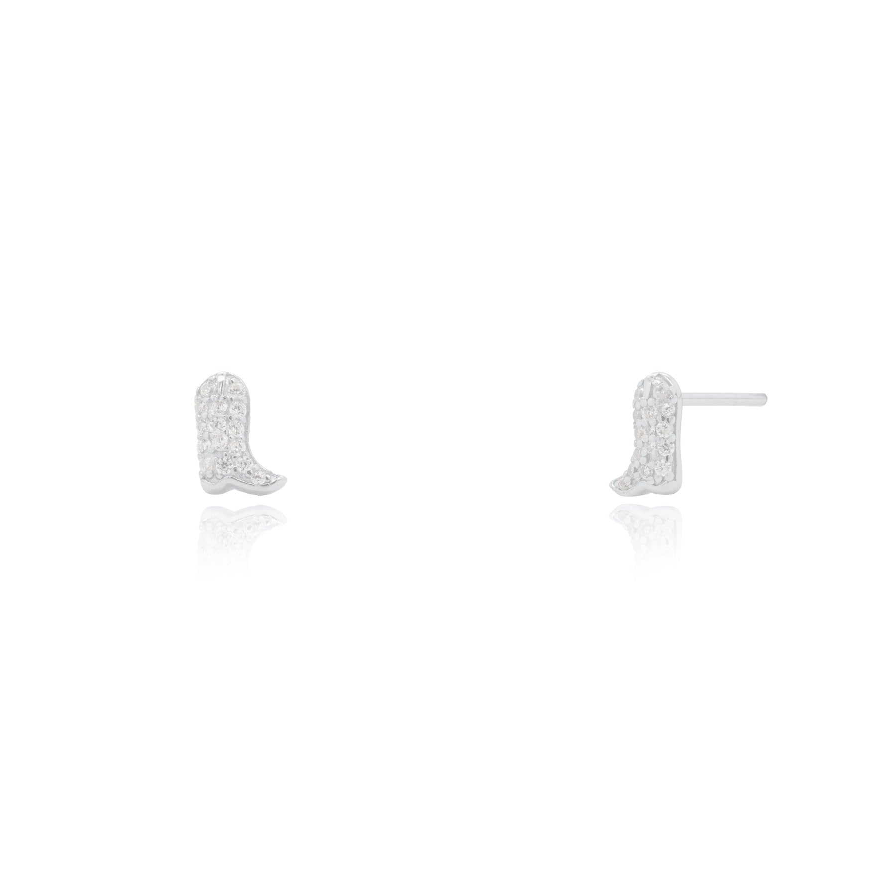 Sterling Silver CZ Pave Cowboy Boots Stud Earrings