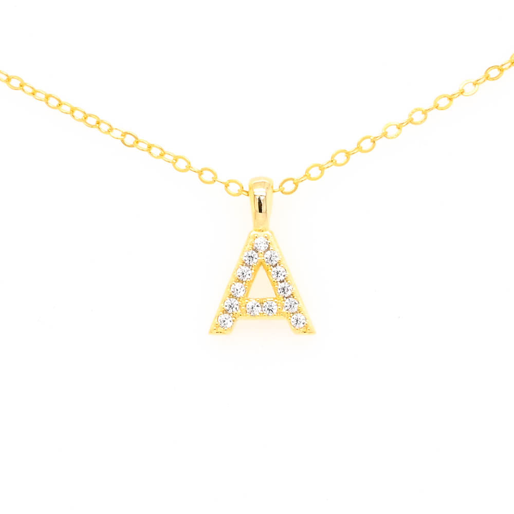 Graziella Sterling Silver Gold Vermeil C.Z Pave Letter "A" Necklace.