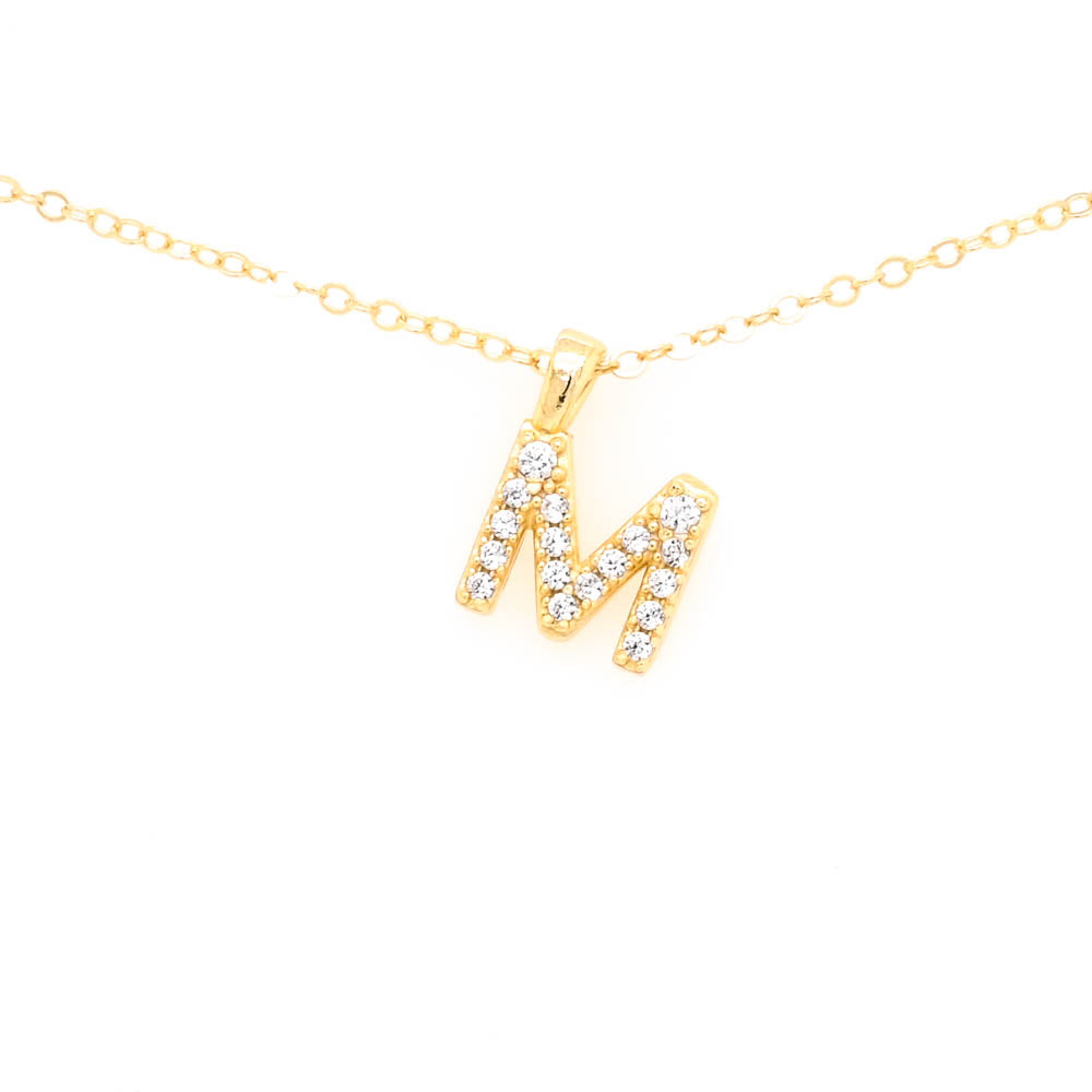 Graziella Sterling Silver Gold Vermeil C.Z Pave Letter "M" Necklace.