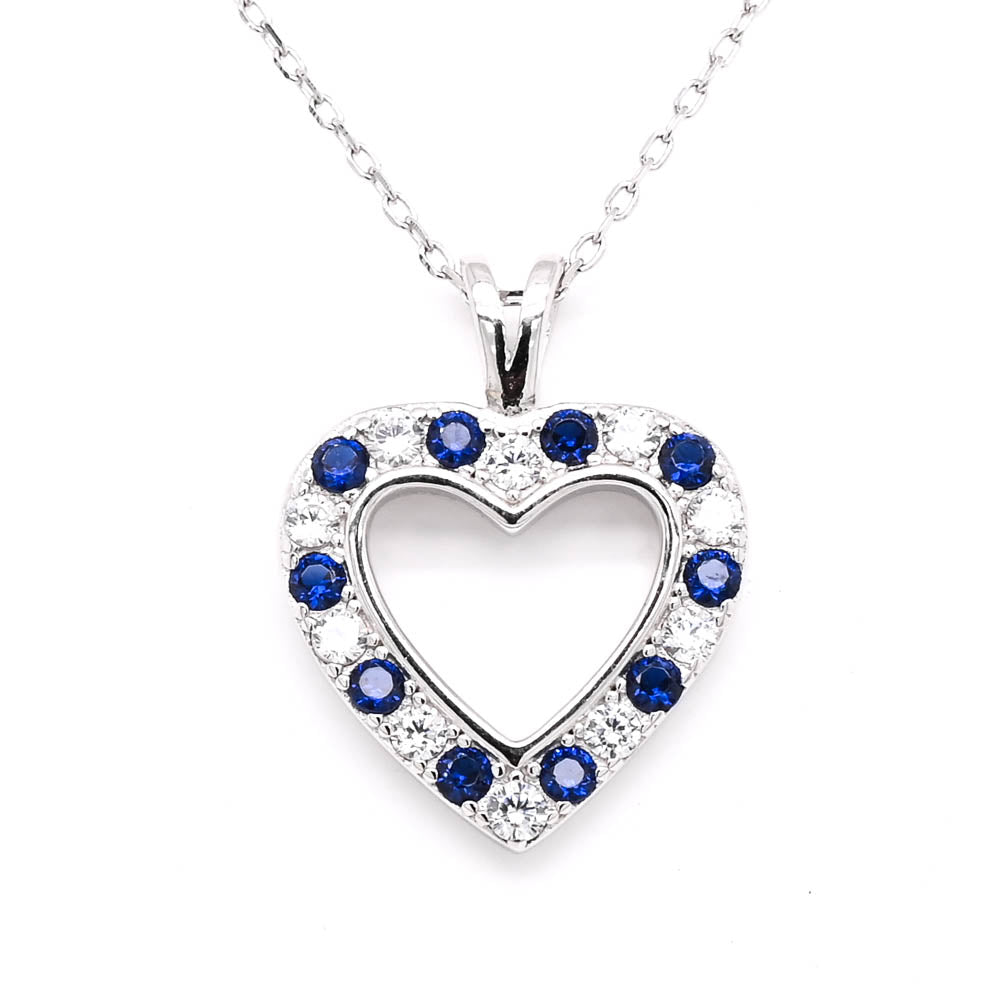 Sterling Silver 18" Blue & White C.Z Heart Necklace.