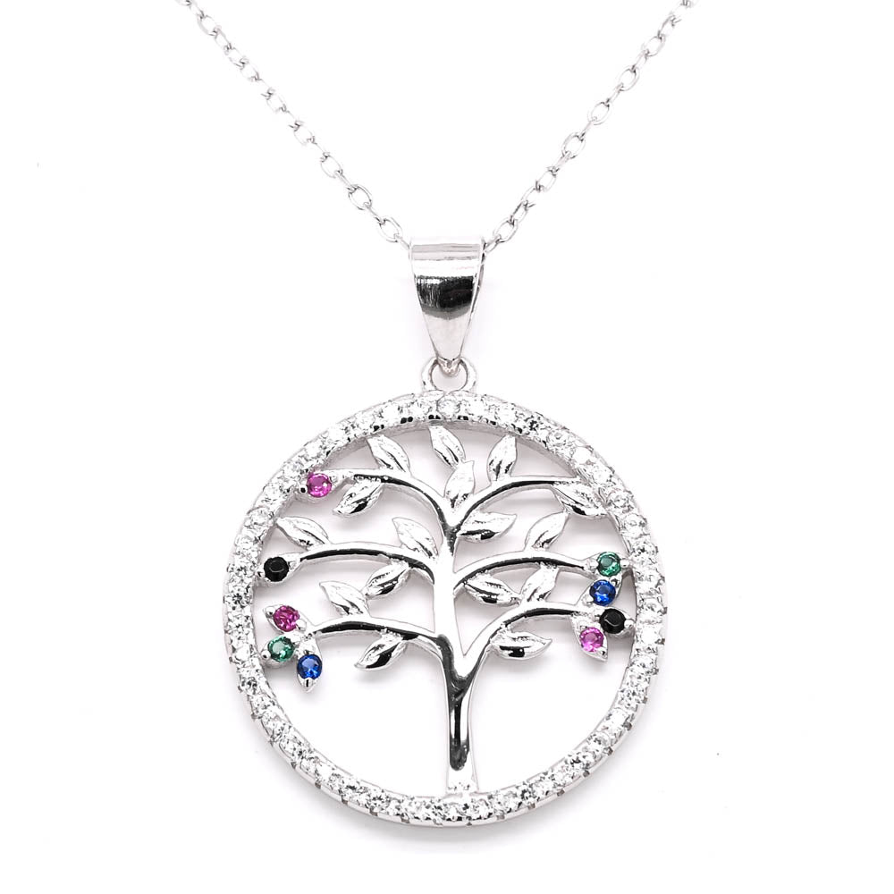 Sterling Silver 18" C.Z Tree of Life Necklace.