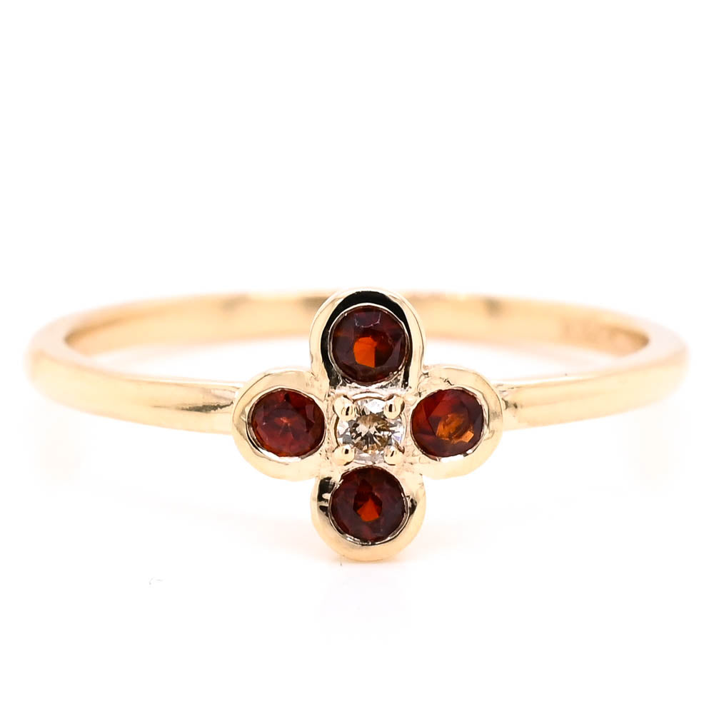 10KT Yellow Gold Garnet & Diamond Flower Ring.