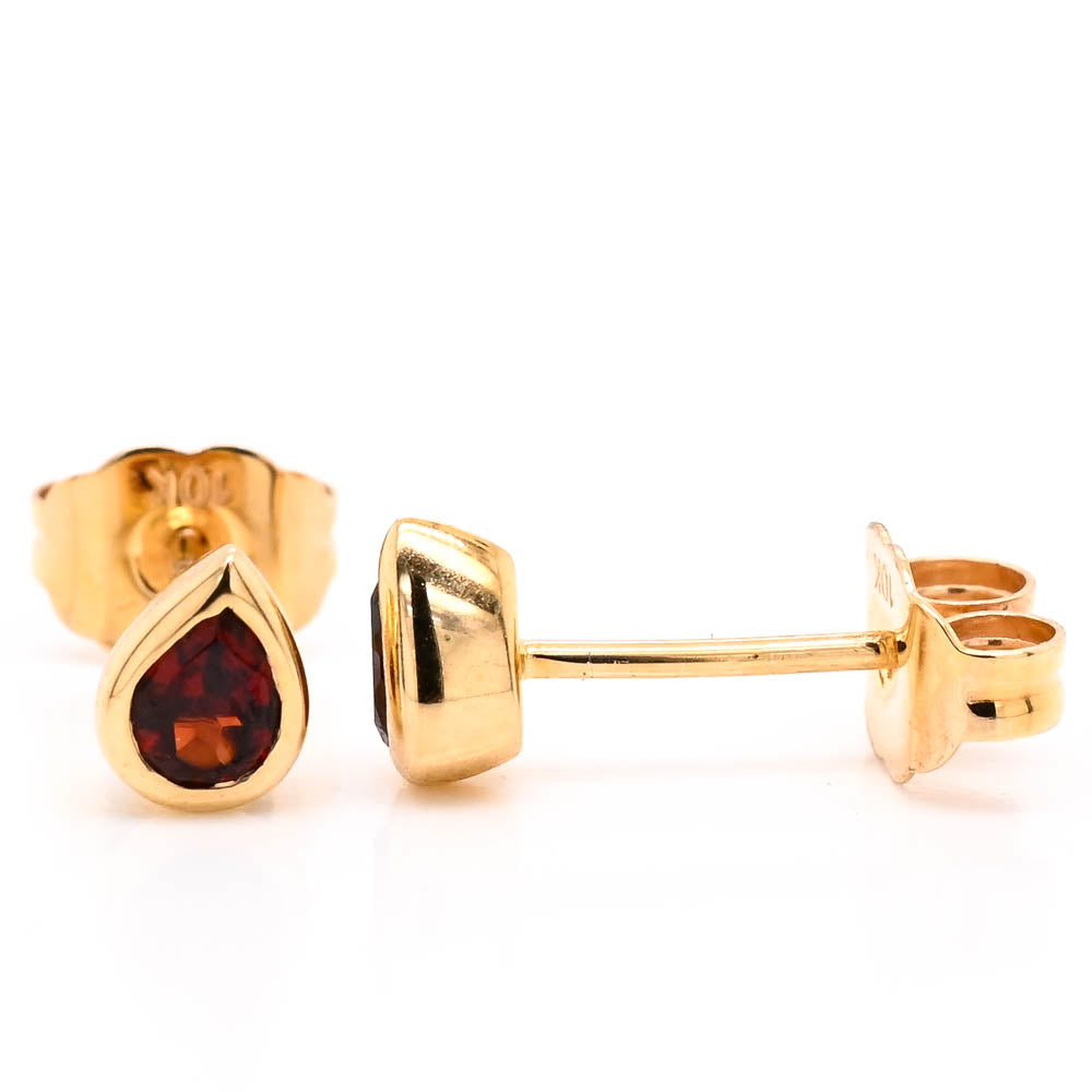 10KT Yellow Gold 0.35CTW Pear Shape Garnet Bezel Set Stud Earrings.