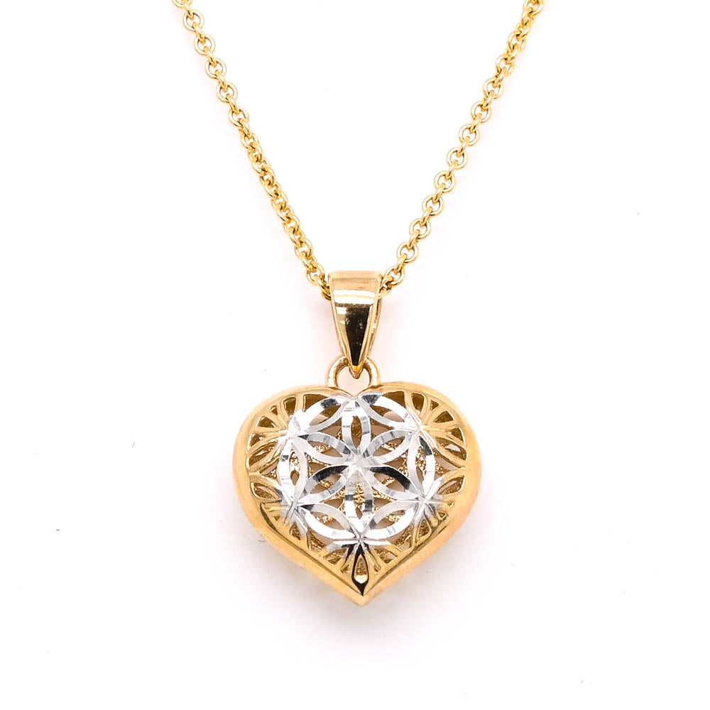 10KT Yellow Gold 12.8mm Filigree Heart Pendant.