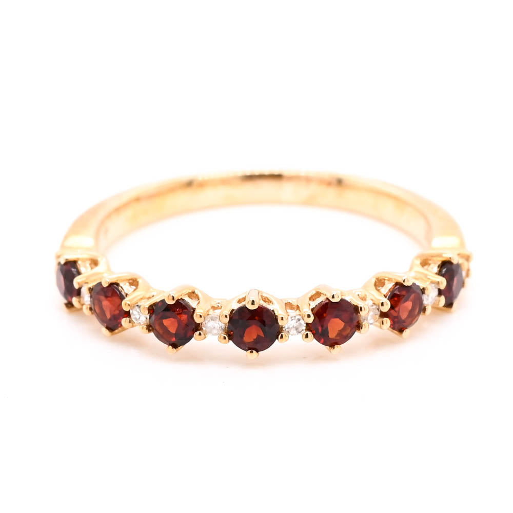 10KT Yellow Gold 0.55CTW Garnet & Diamond Band.