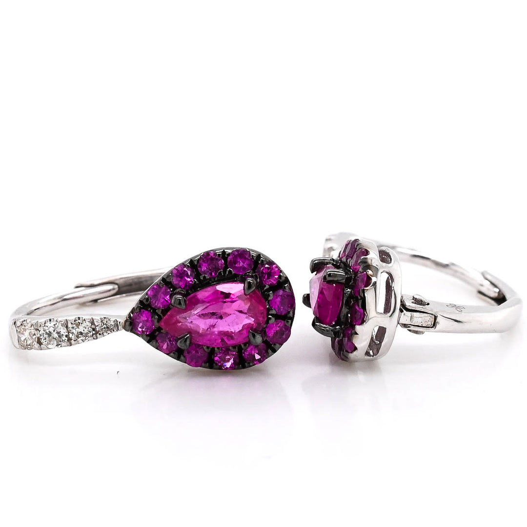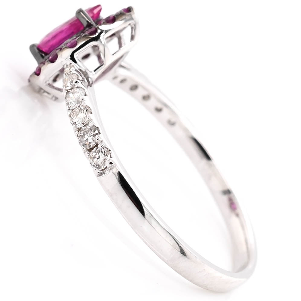 14KT White Gold 0.76CT Pear Shape Natural Ruby and Diamond Ring.