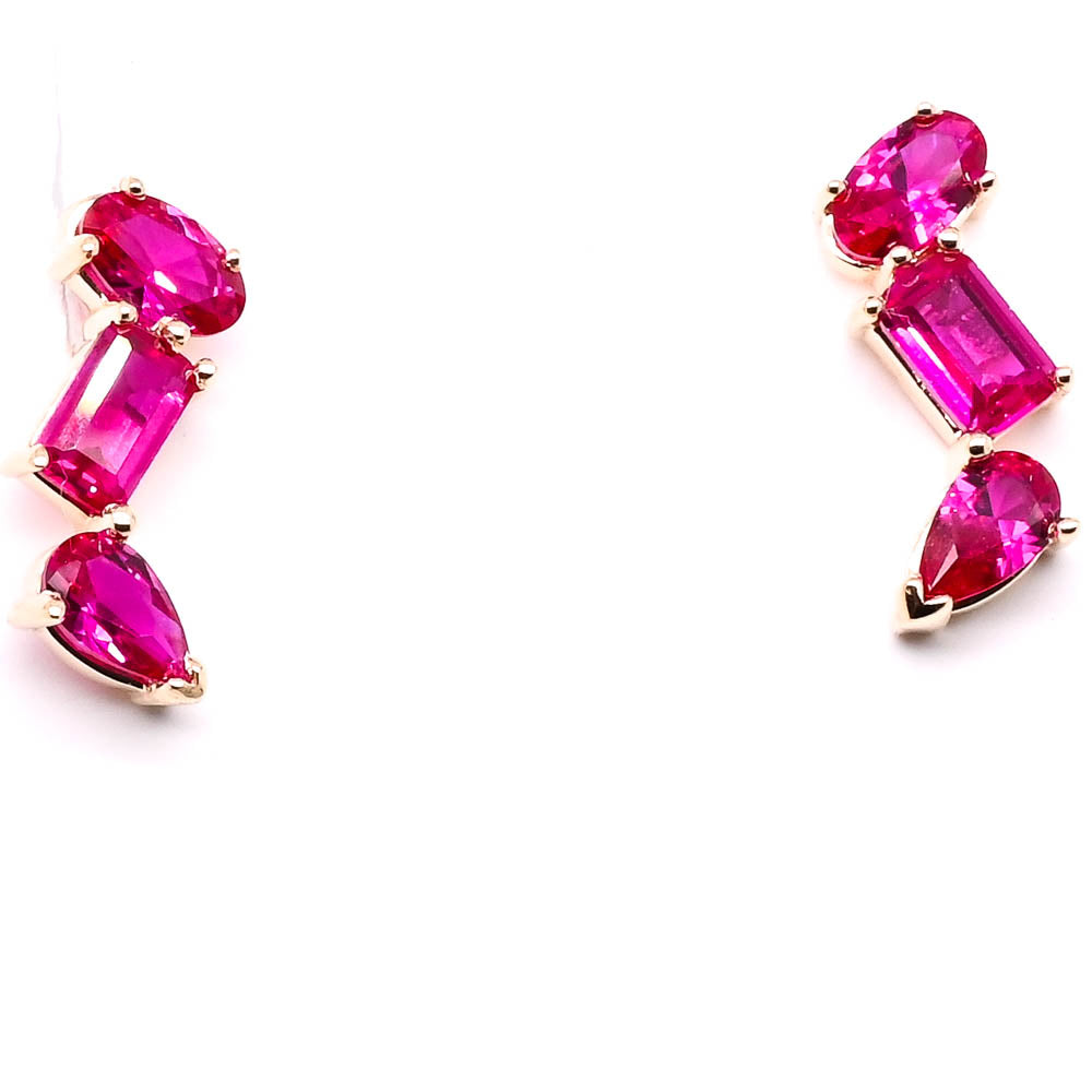 10KT Yellow Gold 1.50CTW LAB Created Ruby Drop Earrings.