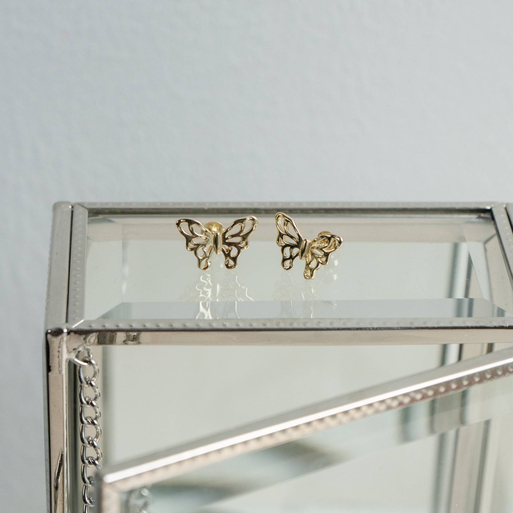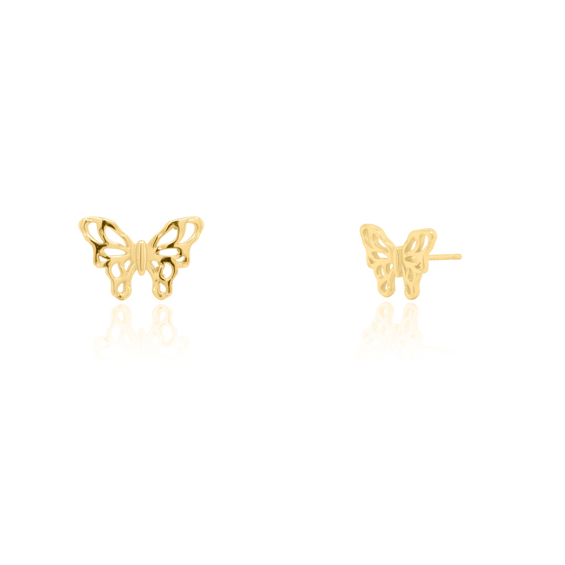 Charming sterling silver stud earrings with delicate cutout butterfly design for a whimsical, feminine touch