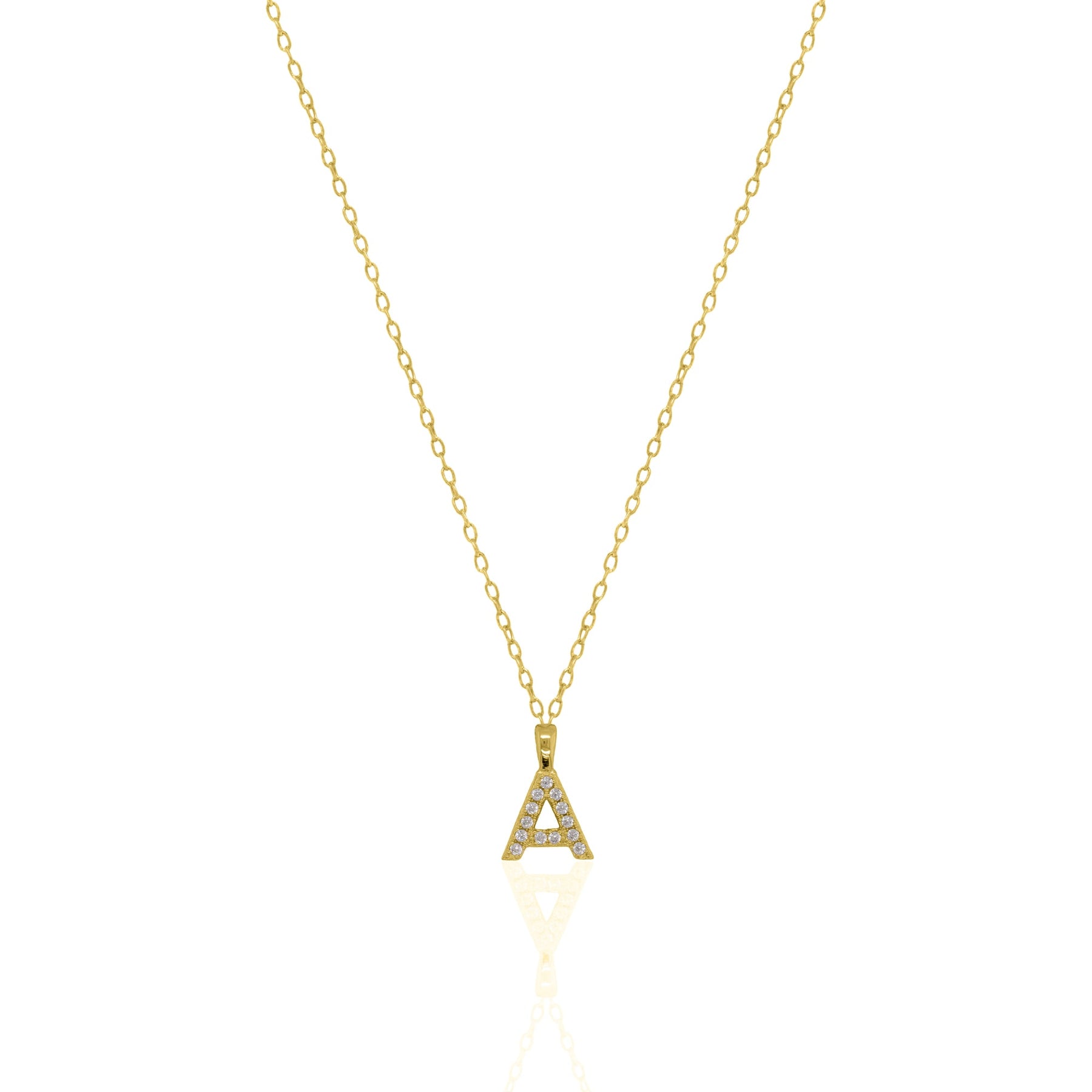 Graziella Sterling Silver Gold Vermeil C.Z Pave Letter "A" Necklace.