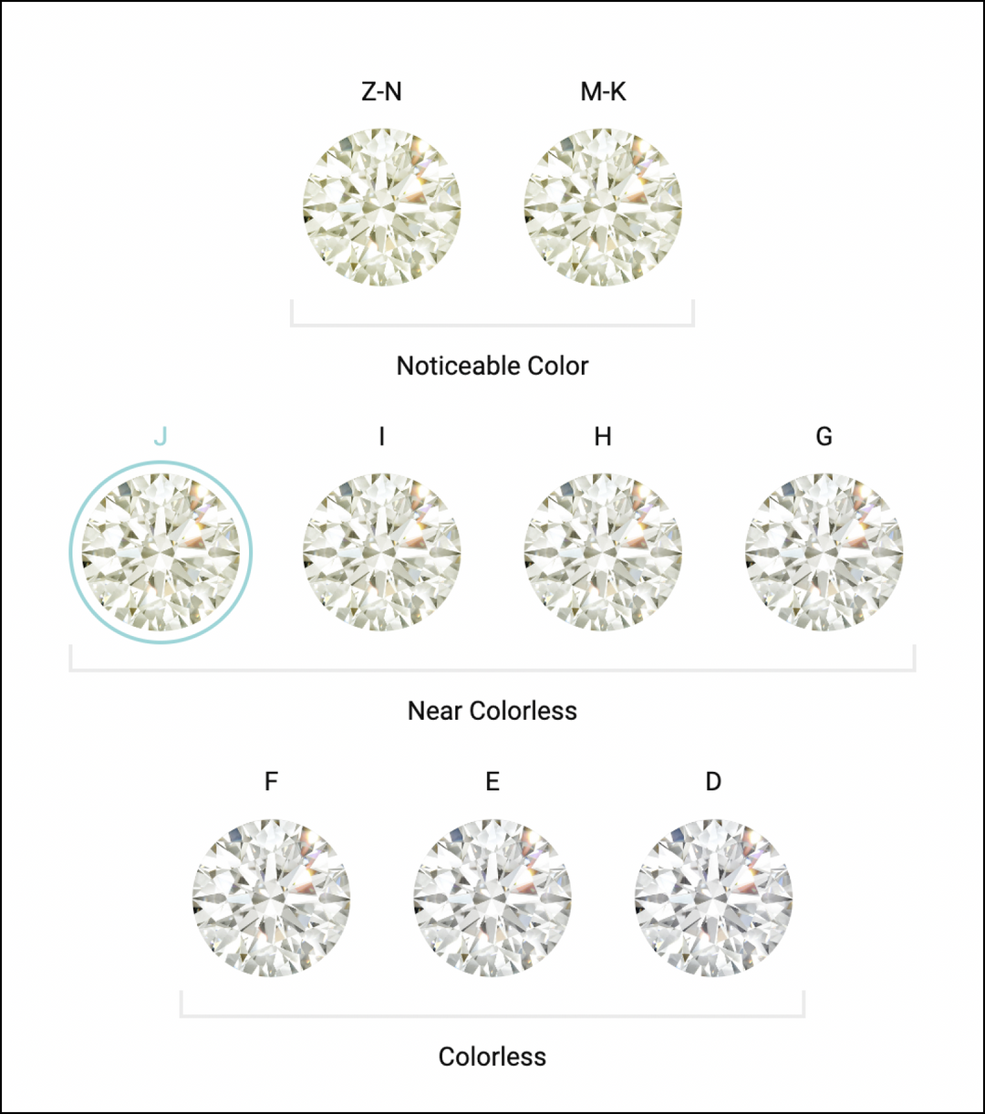 Color is one of the more noticeable attributes of a diamond and has a heavy impact on the price of the stone. Diamonds range from colorless to yellow or light brown, and are sometimes found in a spectrum of fancy colors, including yellow, blue, and even red diamonds. The less color, the rarer the diamond. After 'Z' on the color scale, diamonds become fancy yellow, which cost more because of their rarity.